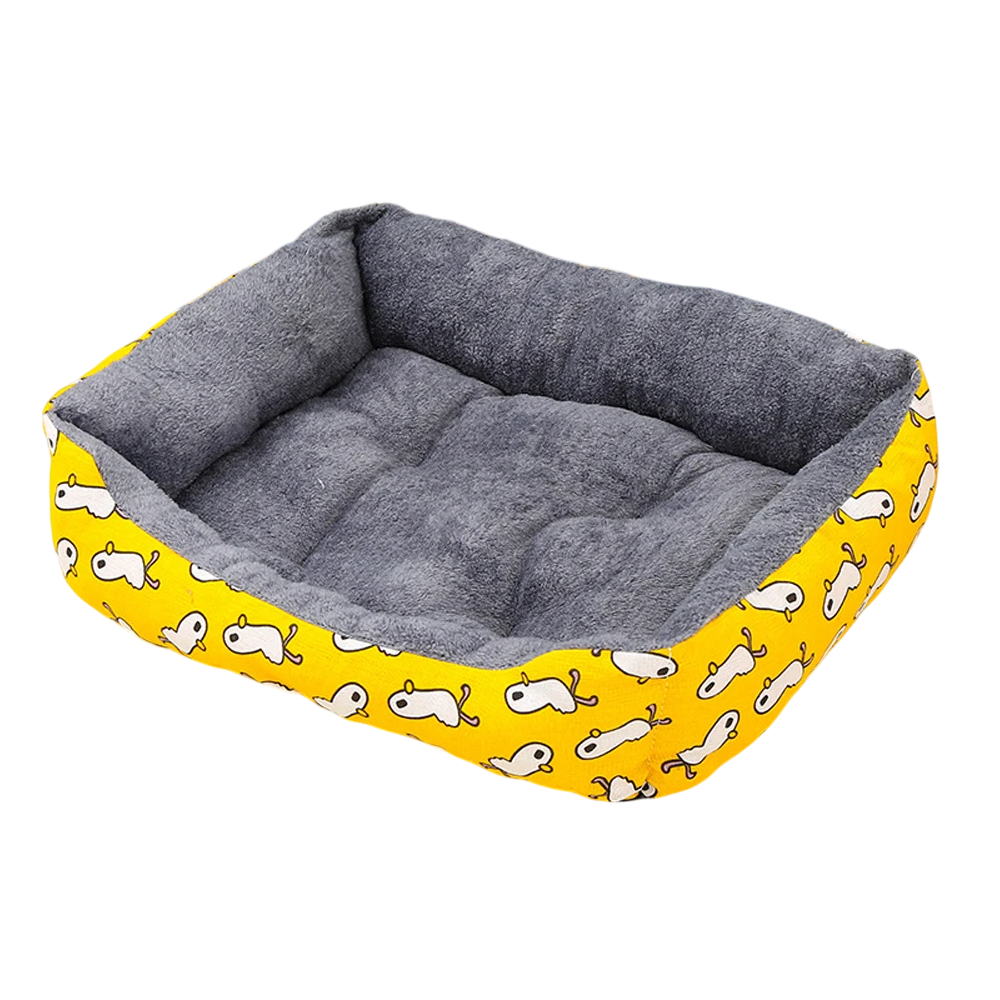 Cama suave para perros y gatos con relleno de algodón PP. Estilo con patrón de patitos, interior cálido y construcción transpirable garantizan máxima comodidad. Descripción completa