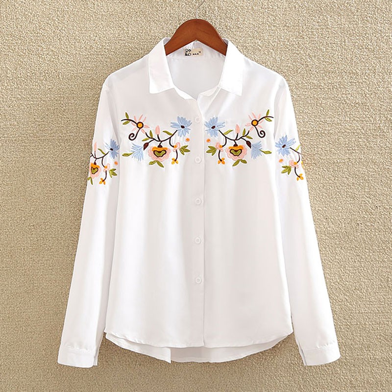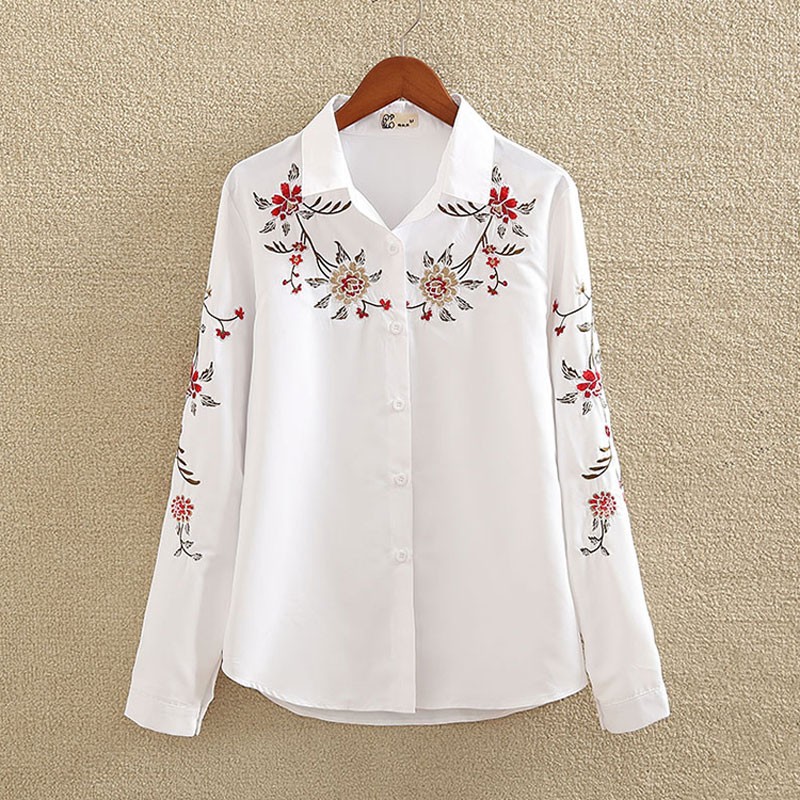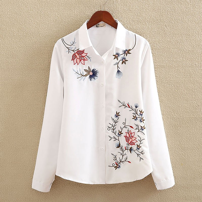 Camisa blanca de mujer con flores