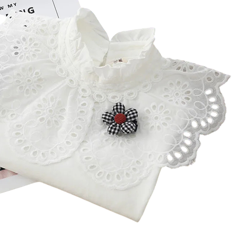 - Contenido del paquete: 1× camisa blanca de encaje para niña con cuello y manga larga