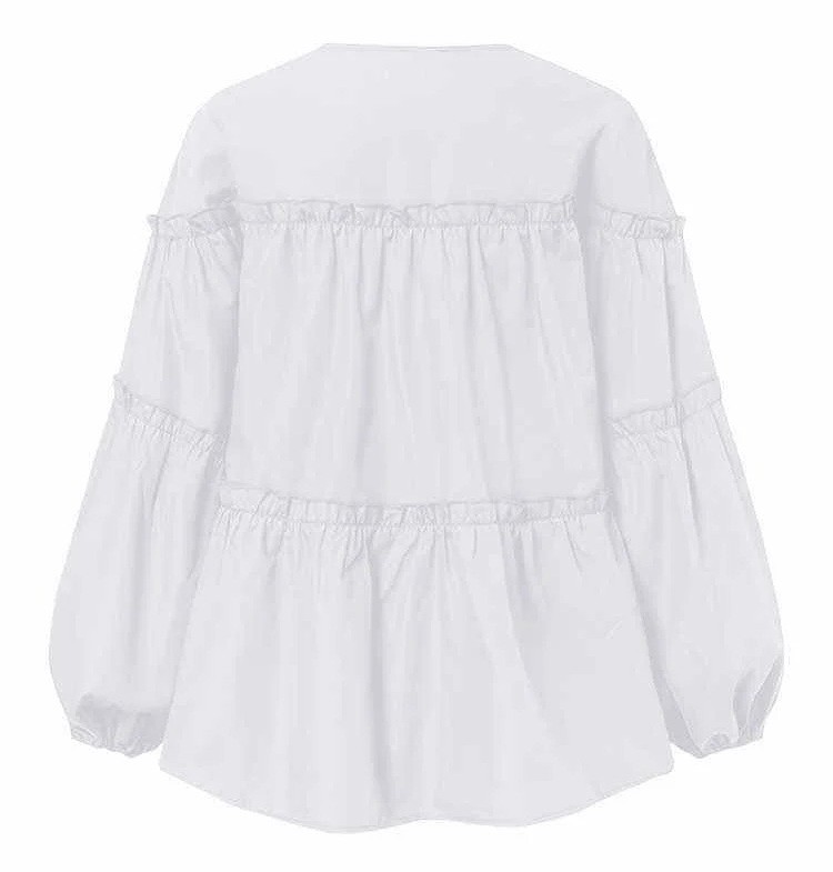 Camisa de mujer elegante y holgada de manga larga con volantes pronunciados que ofrece un corte cómodo y aireado, además de un estilo adecuado para el uso diario. Descripción completa