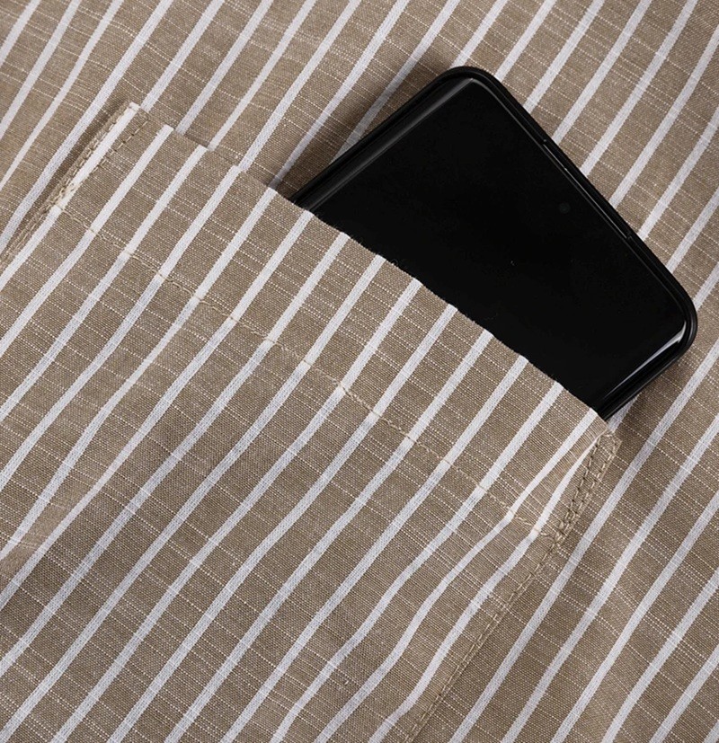 Página de inicio Página de inicio Ropa y accesorios Ropa de mujer Camisas de mujer Camisas de rayas para mujer Camisa de mujer marrón a rayas con cuello y manga larga Blusa estilosa con lazo en la espalda en la cintura Mezcla de poliéster y algodón