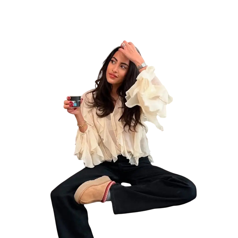 • Camisa femenina elegante con volantes y escote en V para un look moderno y femenino