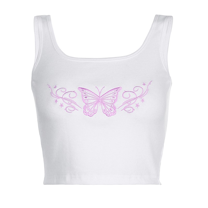 Página de inicio Página de inicio Ropa y accesorios Ropa de mujer Camisetas sin mangas de mujer Camiseta corta de tirantes para mujer con mariposa
