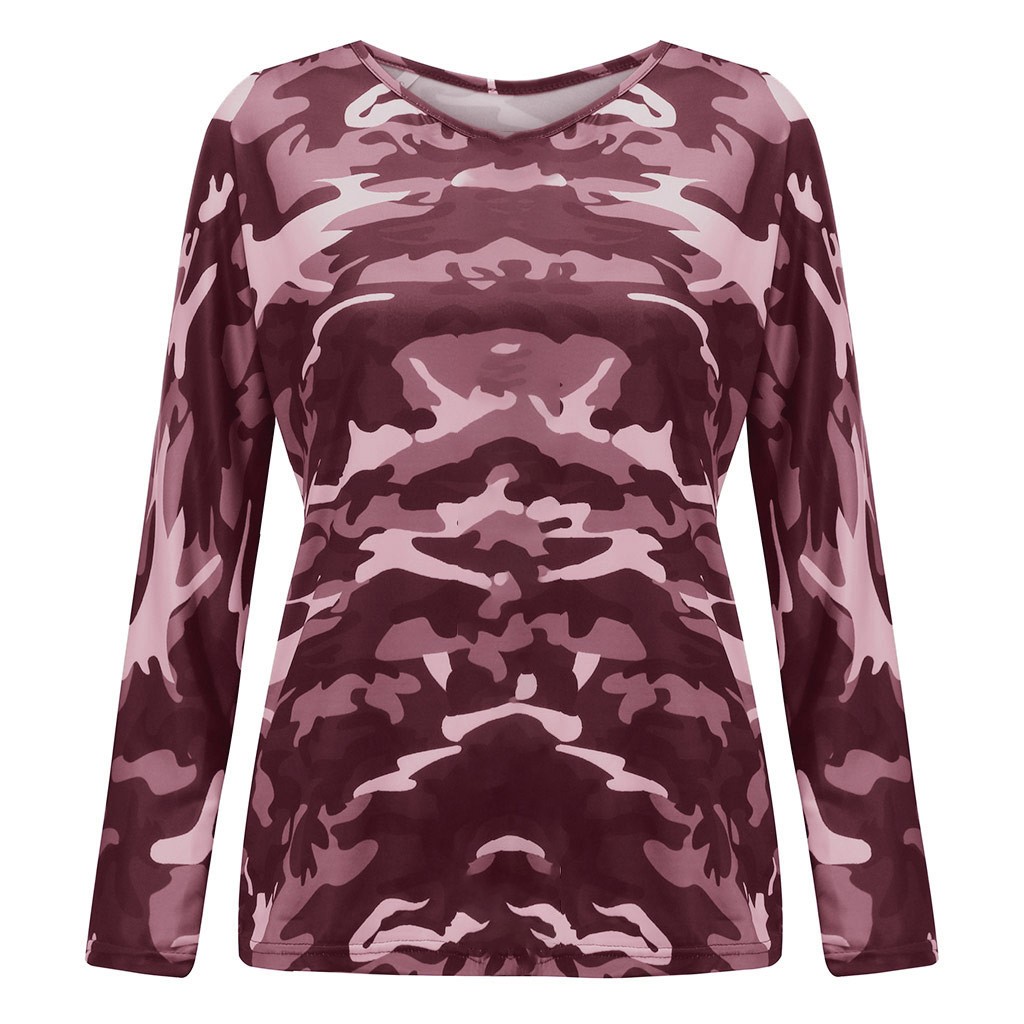 Camiseta de camuflaje de manga larga para mujer