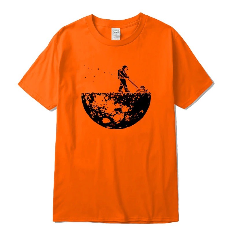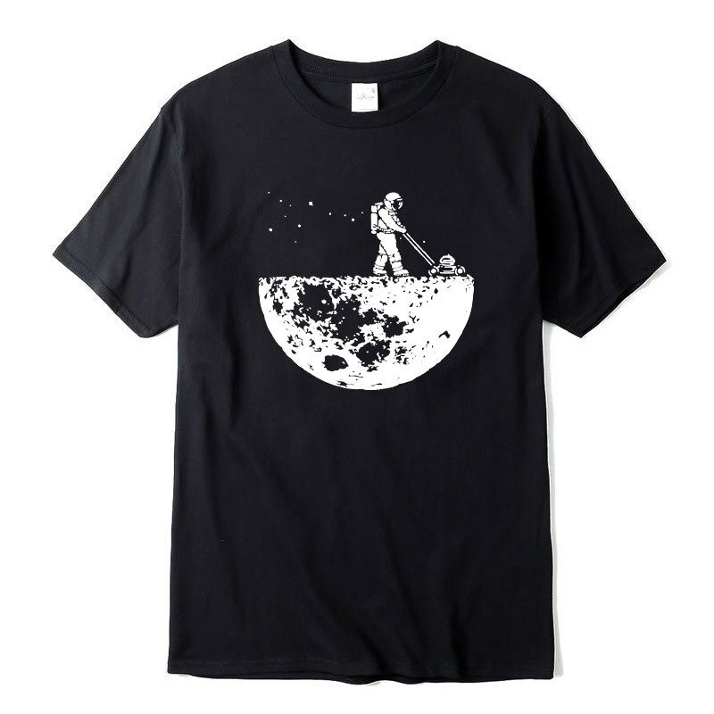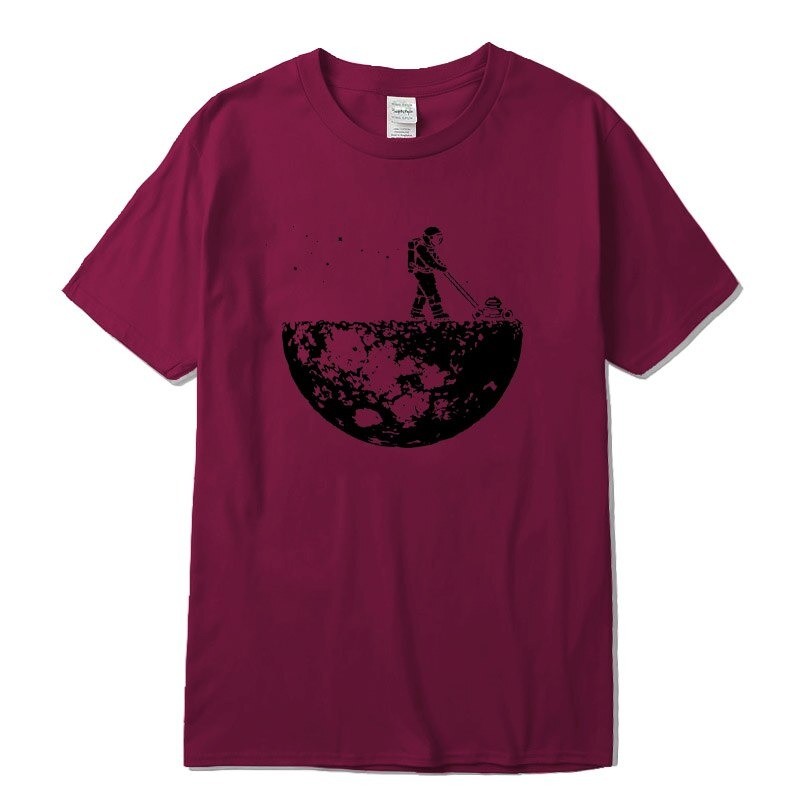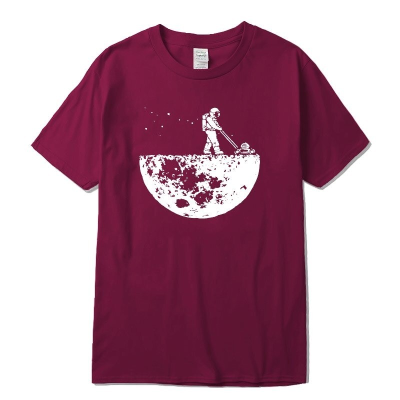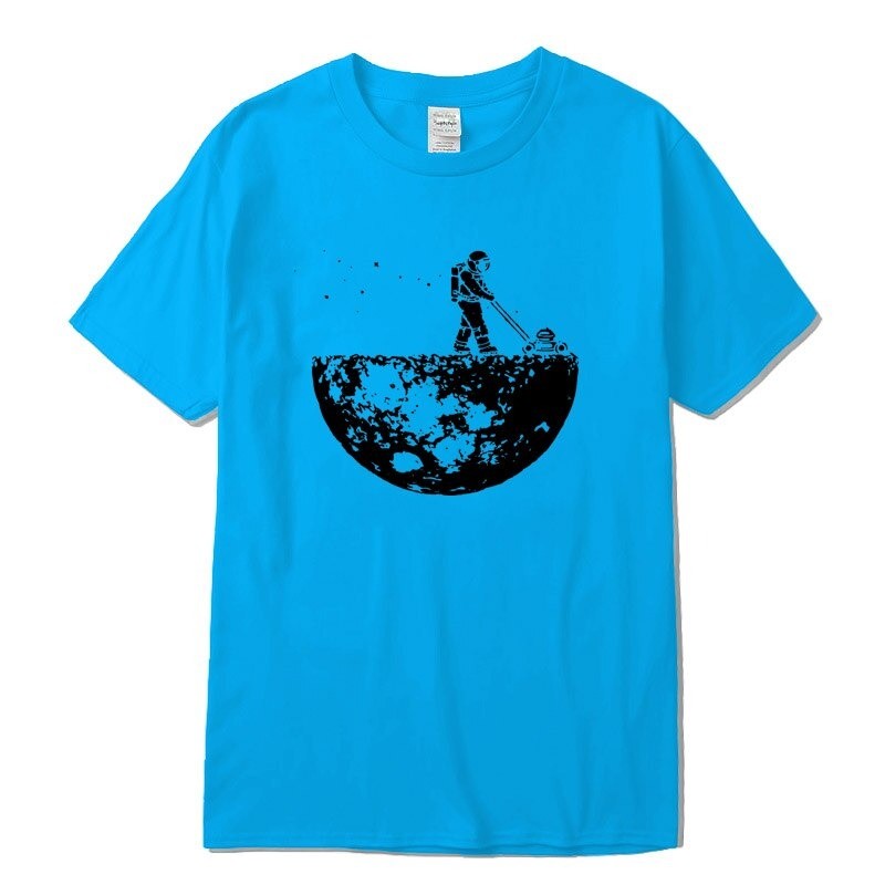 Con una impresión de un astronauta en la luna.