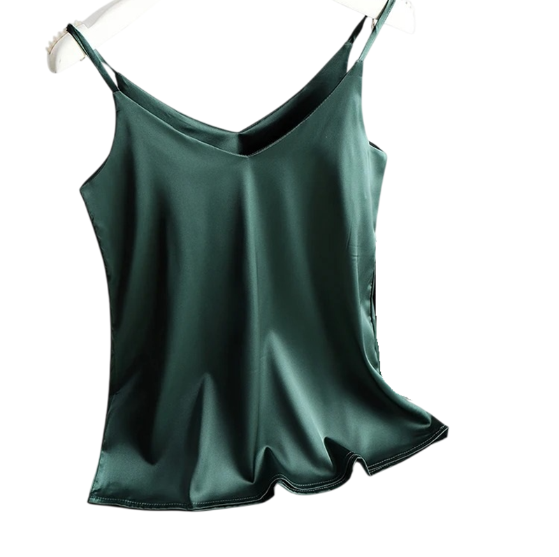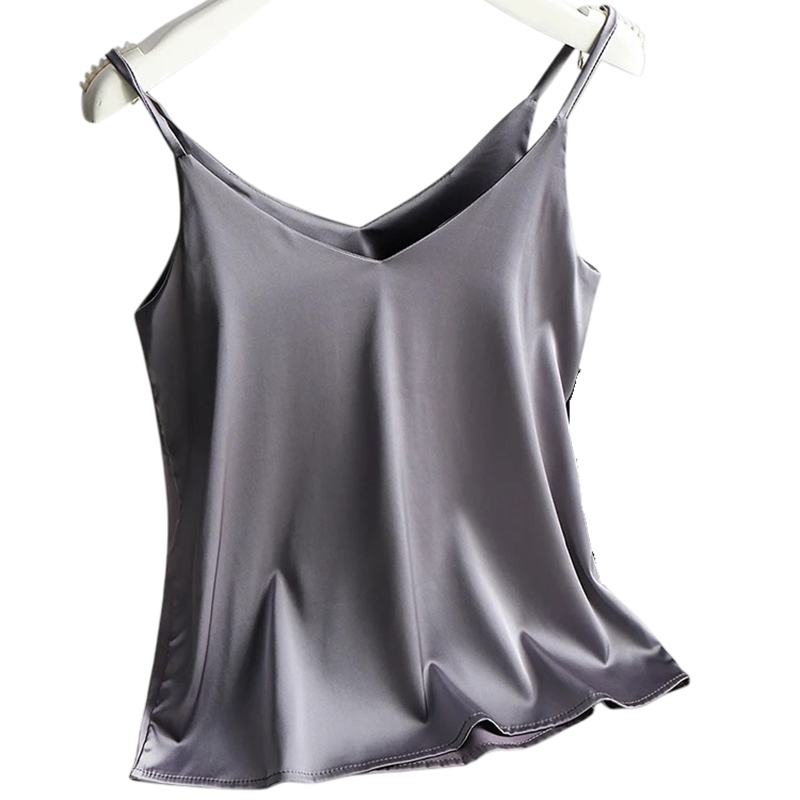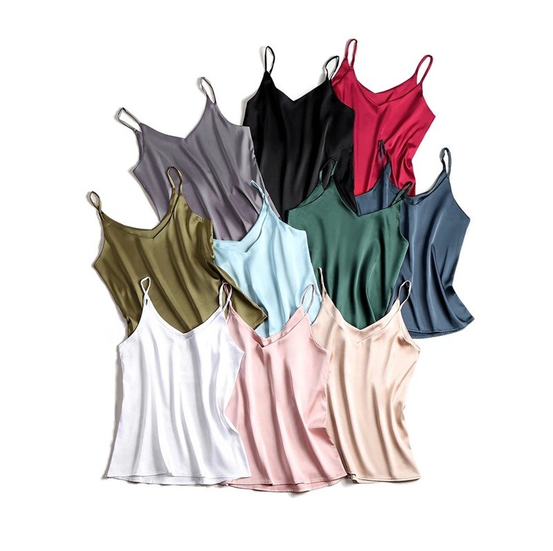 Página de inicio Página de inicio Ropa y accesorios Ropa de mujer Camisetas sin mangas de mujer Camiseta de mujer con escote en V tirantes finos camiseta elegante de poliéster y seda para un ligero uso veraniego
