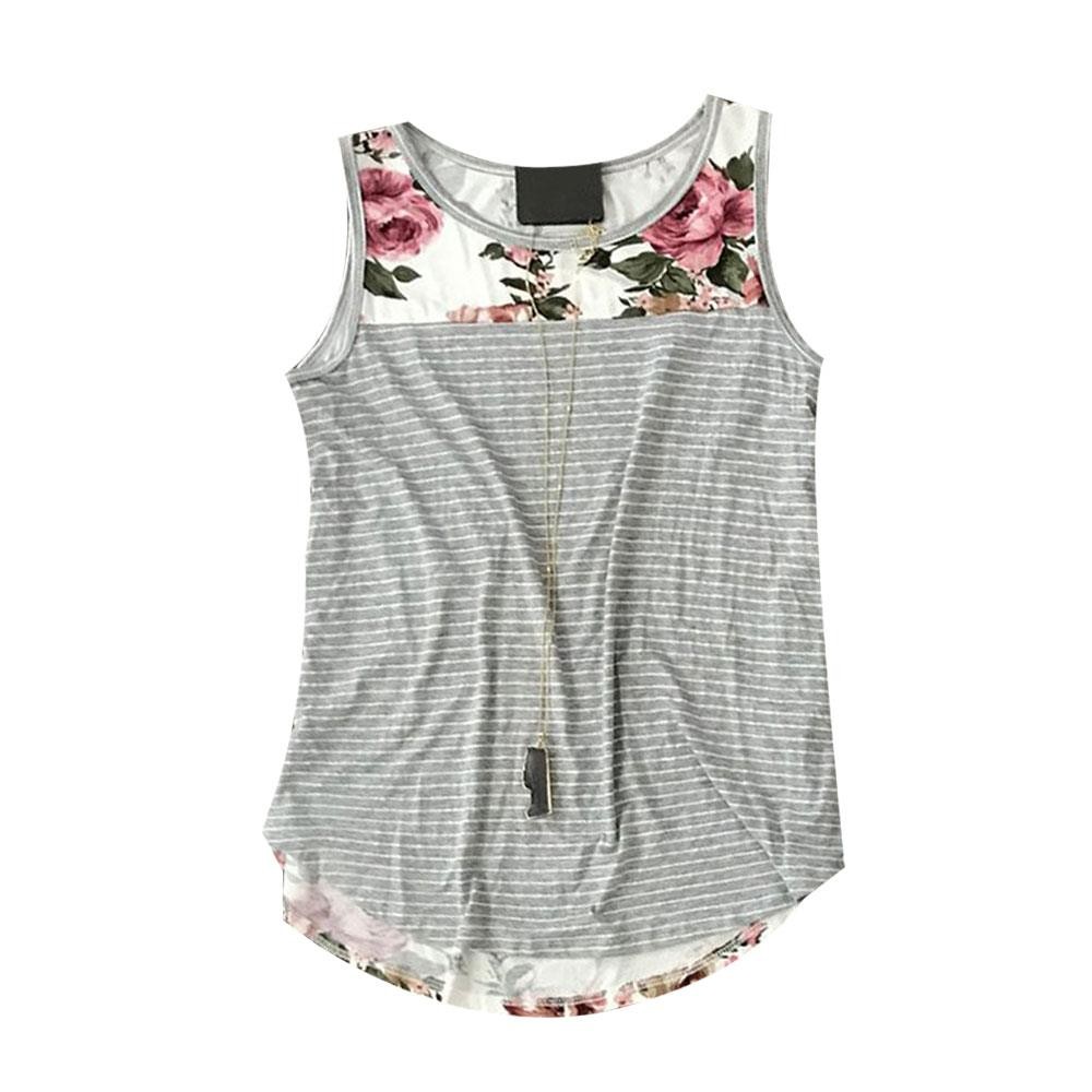 Página de inicio Página de inicio Ropa y accesorios Ropa de mujer Camisetas sin mangas de mujer Camiseta de tirantes de rayas para mujer con flores
