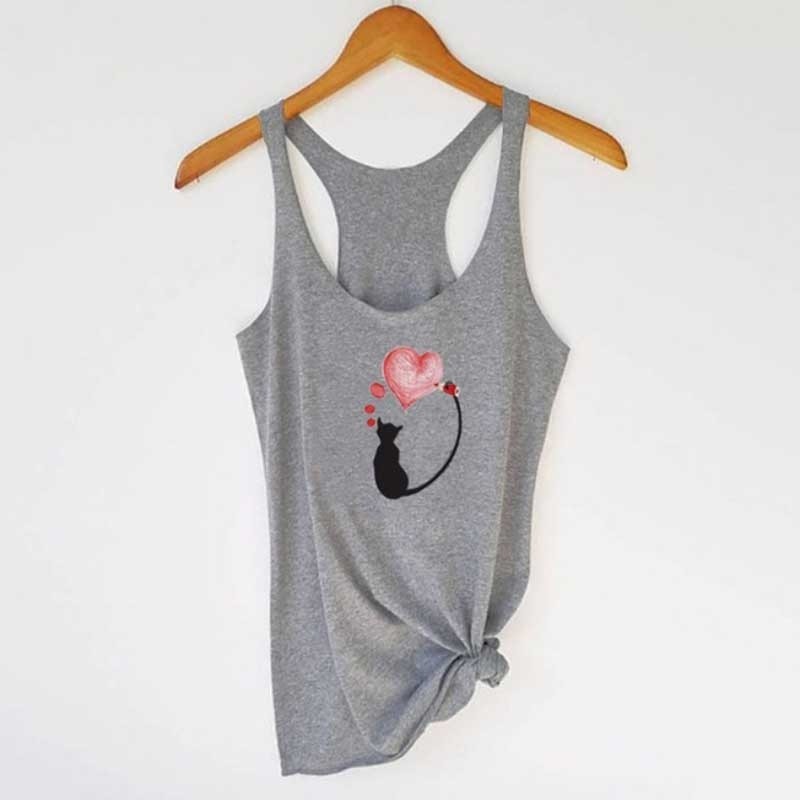 Página de inicio Página de inicio Ropa y accesorios Ropa de mujer Camisetas sin mangas de mujer Camiseta de tirantes para mujer con estampado de gato