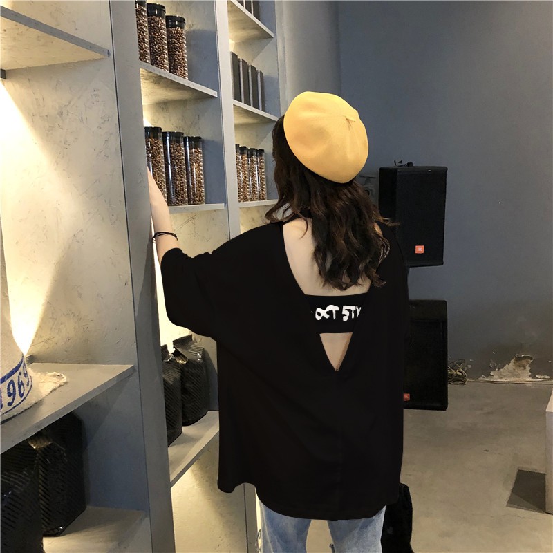 Camiseta holgada de mujer con escote en la espalda