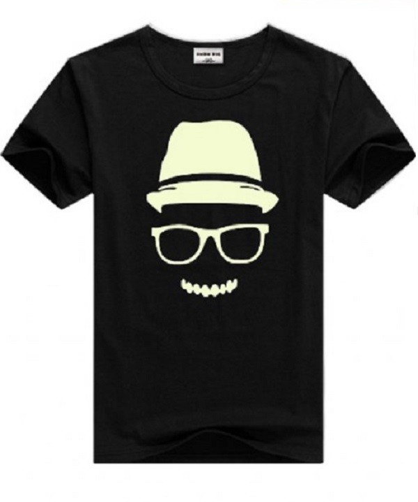 Esta hermosa camiseta para niño presenta varios estampados que brillan en la oscuridad.
