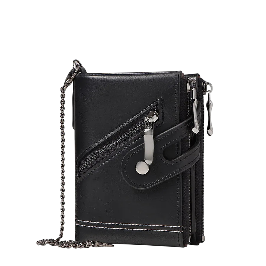 Página de inicio Página de inicio Bolsos, Mochilas y Carteras Bandoleras, mochilas y carteras para hombres Carteras de hombre Cartera masculina plegable con RFID 12 x 10 x 3 cm Cadena Bolsillos con cremallera Cuero sintético Protección segura de tarjetas