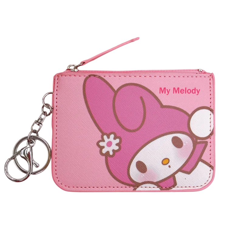 Cartera My Melody rosa con dibujos animados y llavero de piel sintética con cierre de cremallera, tarjetero kawaii, regalo de anime para niños.