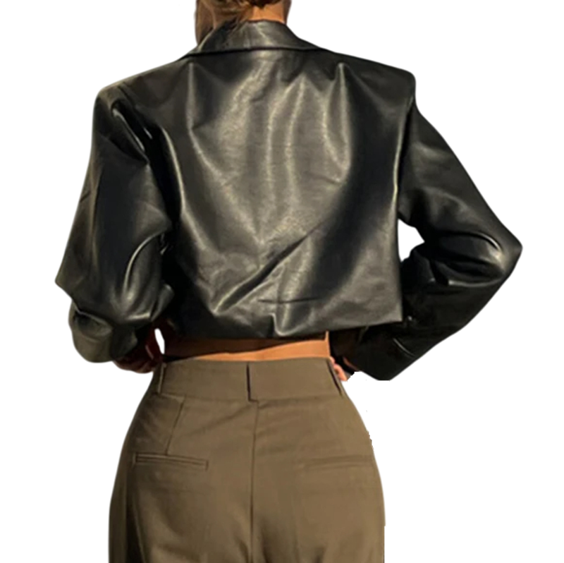 Página de inicio Página de inicio Ropa y accesorios Ropa de mujer Chaquetas y abrigos de mujer Chaquetas de primavera y otoño de mujer Chaqueta corta de mujer de piel sintética Saco elegante de otoño con broches Chaqueta de moda a la cintura Abrigo estiloso con bolsillos Corte moderno