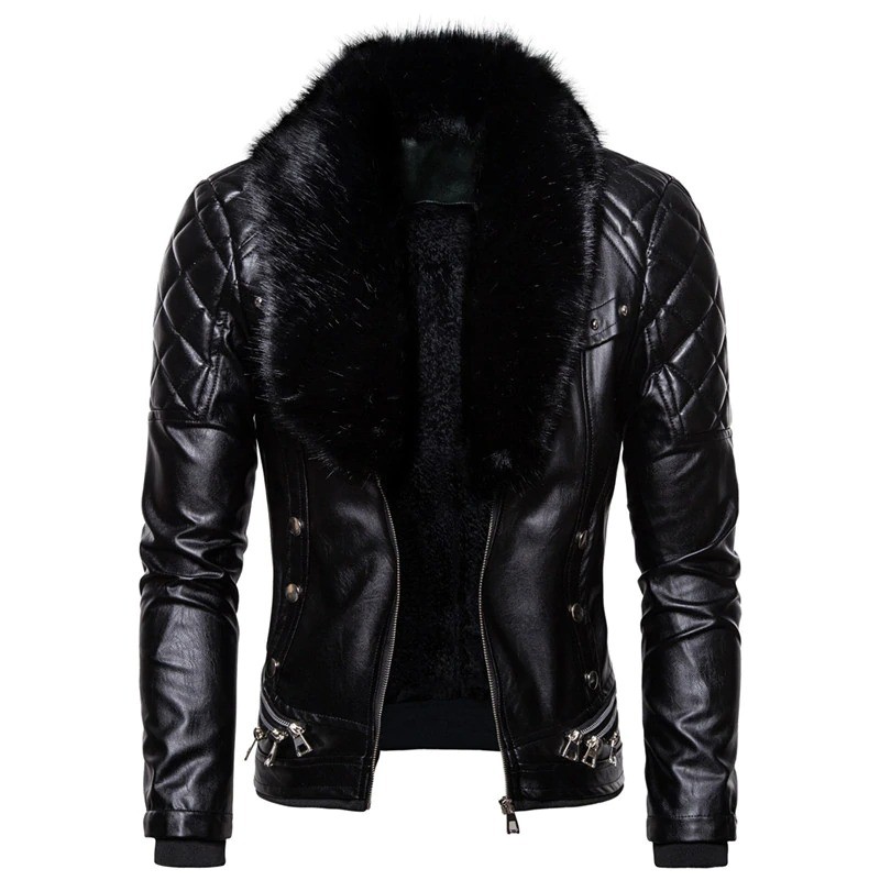 Chaqueta de cuero para hombre con pelo sintético
