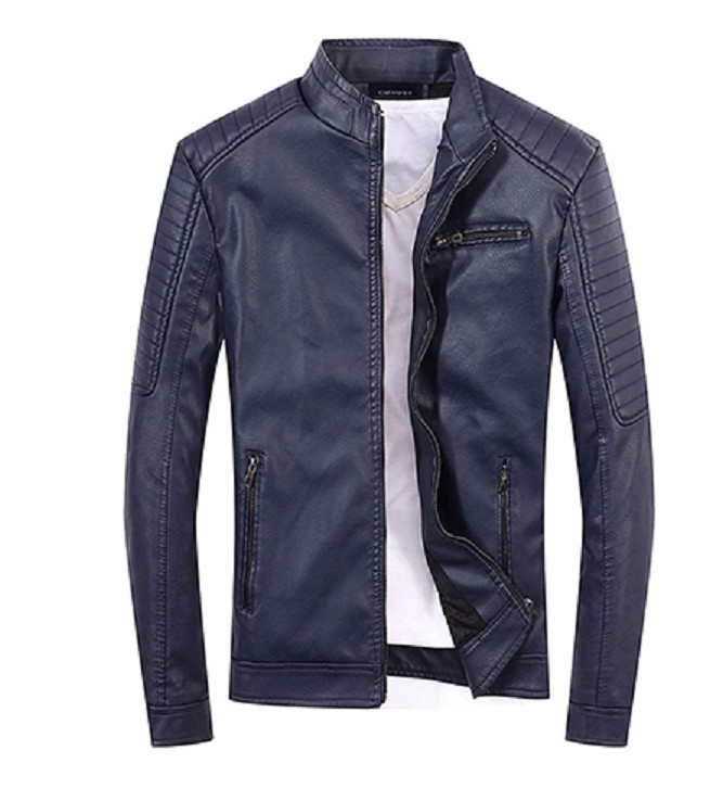 Chaqueta de cuero para hombre con ribete de piel J2067