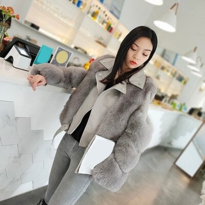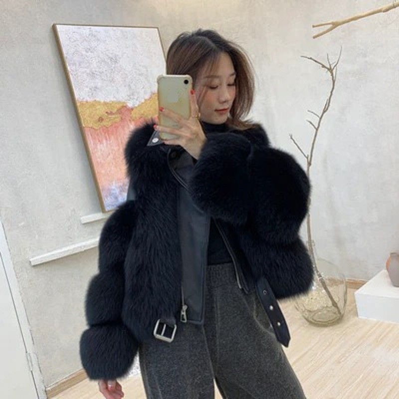 Chaqueta de cuero para mujer con ribete de piel