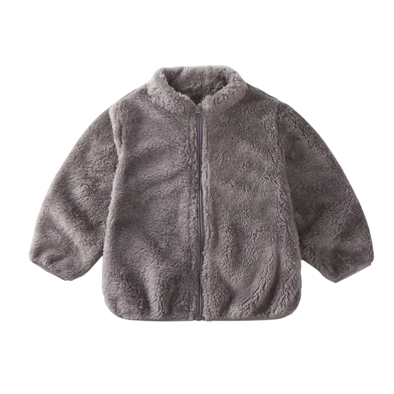 Suave chaqueta de invierno de peluche para niños con cuello alto y cierre de cremallera. El poliéster cálido proporciona calor y comodidad para el uso diario. Descripción completa
