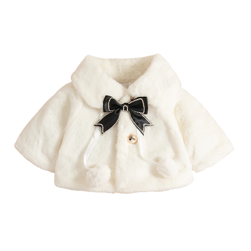 Elegante chaqueta de invierno para niñas con un lindo cuello y lazo. Diseño de poliéster cálido ideal para el uso diario en invierno y ocasiones especiales. Descripción completa