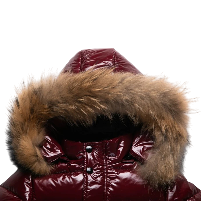 Chaqueta de invierno para niños 90% plumón de pato blanco Chaqueta unisex brillante con capucha y piel sintética Cierre de cremallera y botones a presión y bolsillos