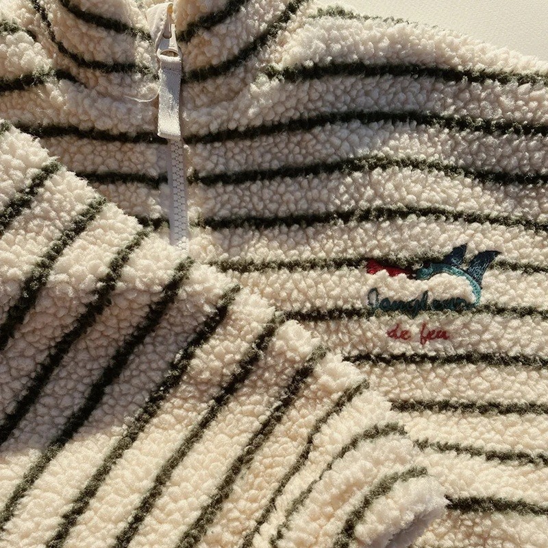 Chaqueta de invierno para niños amarilla con rayas Chaqueta de felpa de algodón y poliéster con cremallera y cuello alto Abrigo cálido y cómodo para el invierno