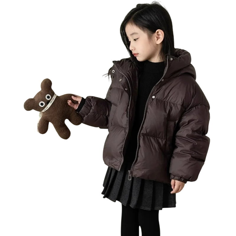 Cálida chaqueta de invierno para niños con capucha para niños y niñas, uso cómodo, material cálido y práctico cierre de cremallera para días de invierno. Descripción completa