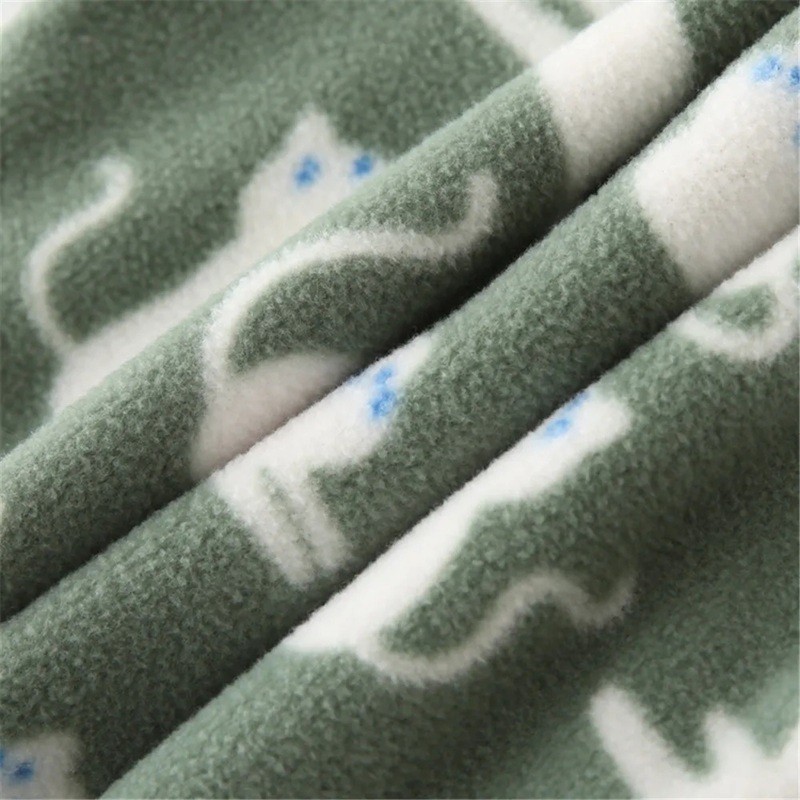 Chaqueta de invierno para niños con cuello alto Chaqueta unisex abotonada Verde chaqueta de felpa con bolsillos Chaqueta de invierno cómoda con motivo de gatos para niños