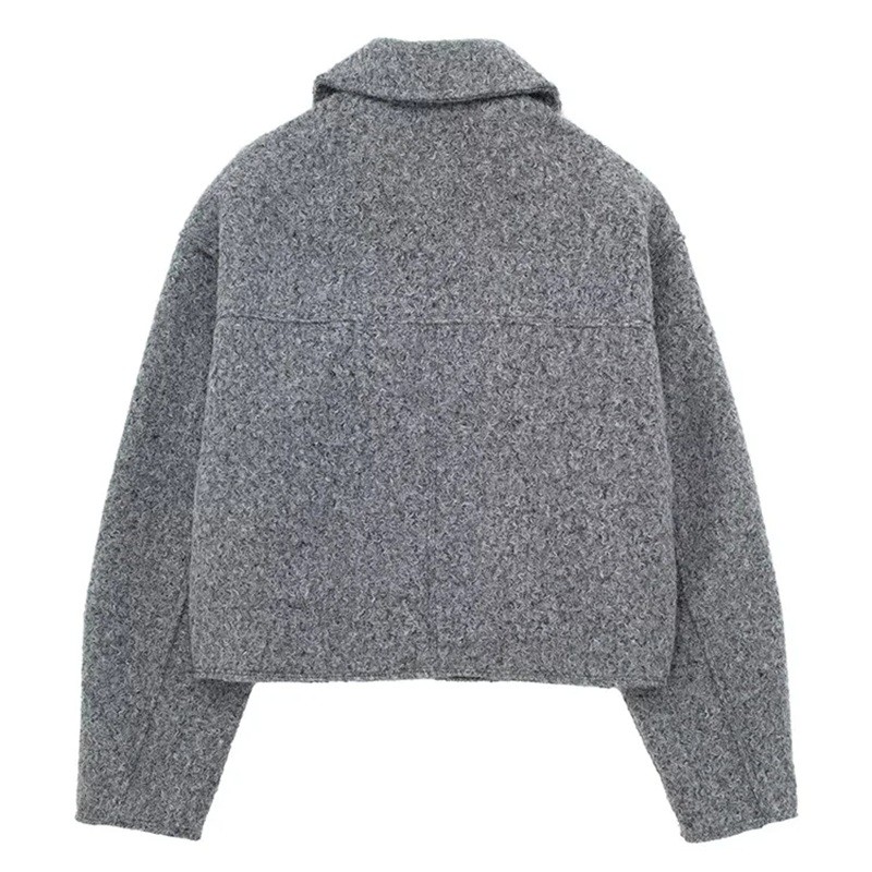 Página de inicio Página de inicio Ropa y accesorios Ropa de mujer Chaquetas y abrigos de mujer Chaquetas de primavera y otoño de mujer Chaqueta de otoño de lana para mujer con cremallera Corte corto Cuello solapa Dos bolsillos con solapa Abrigo elegante para el período de transición Estilo urbano