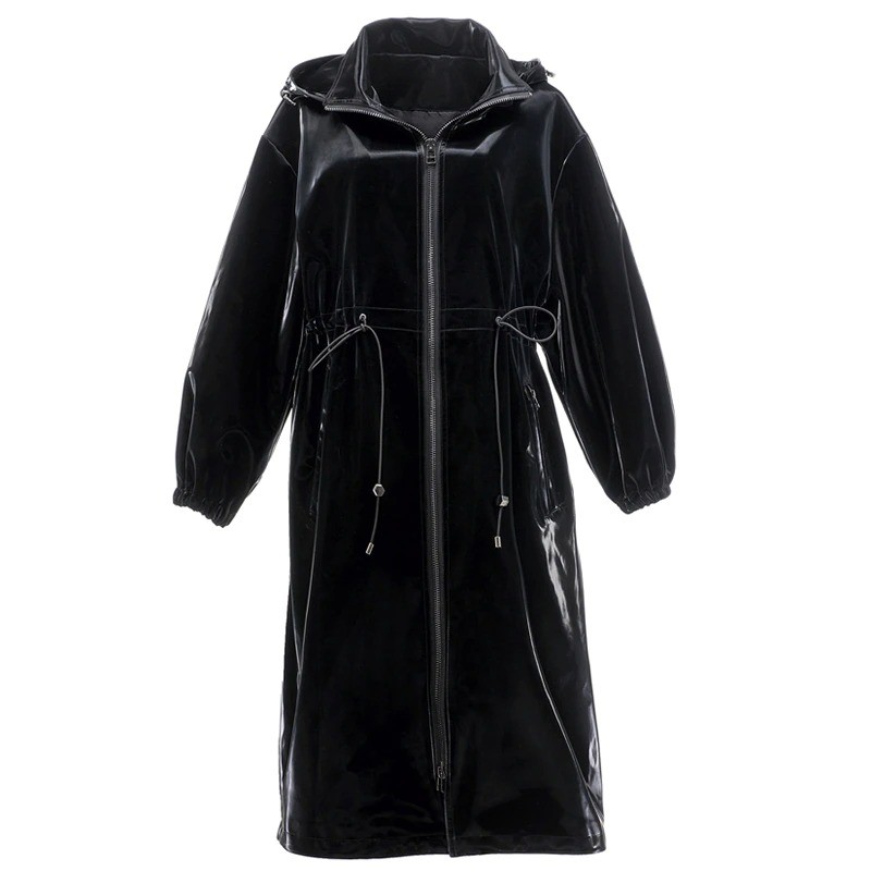 Chaqueta larga de cuero para mujer