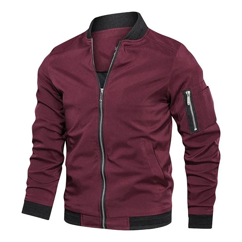 Moderna chaqueta bomber de transición para hombre con un práctico bolsillo en la manga, cierre de cremallera y dobladillos elásticos para un ajuste cómodo. Descripción completa