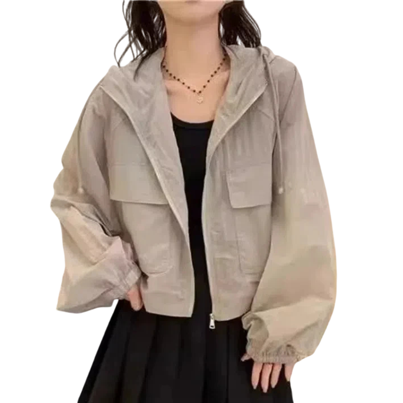 Página de inicio Página de inicio Ropa y accesorios Ropa de mujer Chaquetas y abrigos de mujer Chaquetas de primavera y otoño de mujer Chaqueta ligera para mujer con capucha Rápido secado Cortavientos Chaqueta impermeable para la ciudad Protección UV Chaqueta ligera de primavera con bolsillos con cremallera