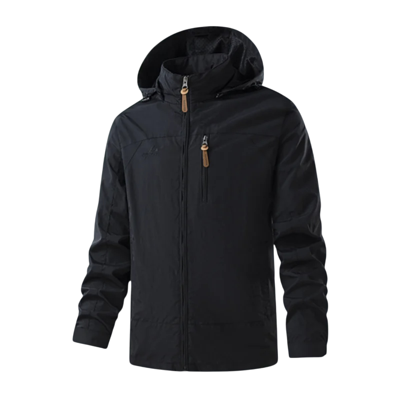 Chaqueta funcional para hombre, ideal para senderismo y uso diario. Resistente al viento y la lluvia, con capucha y prácticos bolsillos. Descripción completa