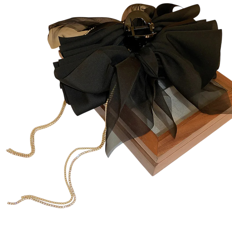 Clip para el cabello de mujer con gran lazo de organza y cadenas Accesorio de tela elegante para recogido y peinado