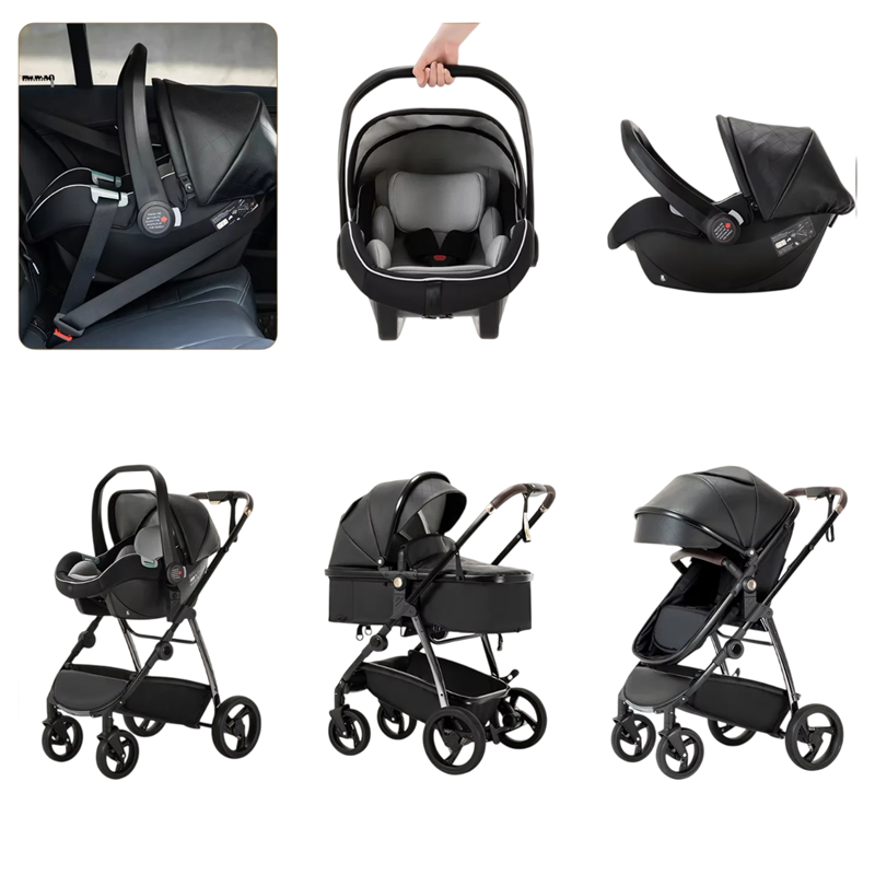 El cochecito de bebé 3 en 1 está diseñado para el transporte cómodo de recién nacidos y niños pequeños. El capazo desmontable proporciona un entorno cómodo para dormir y descansar, mientras que la silla deportiva permite un asiento seguro y estable durante paseos más largos. El marco robusto del cochecito garantiza estabilidad y durabilidad en el uso diario. El cochecito es plegable, lo que facilita su almacenamiento y transporte, manteniendo al mismo tiempo una construcción sólida adecuada para el uso diario.