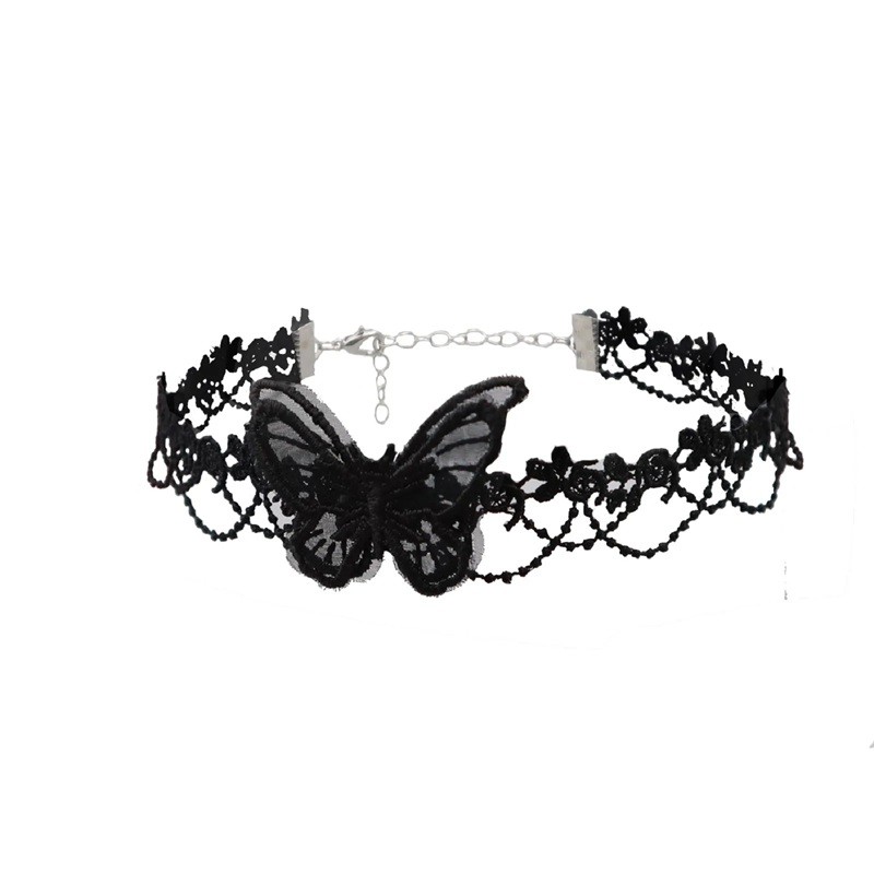 Collar choker de encaje para mujer con colgante de mariposa y cierre de aleación de zinc negro elegante joya para el cuello para uso social