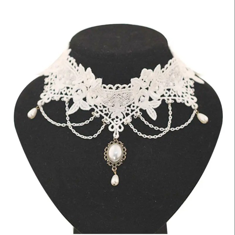 Página de inicio Página de inicio Joyería y relojes Joyería y relojes para mujeres Gargantillas para mujer Collar choker de encaje para mujer con colgante y cadenas de cierre encaje blanco elegante complemento para el cuello para uso social