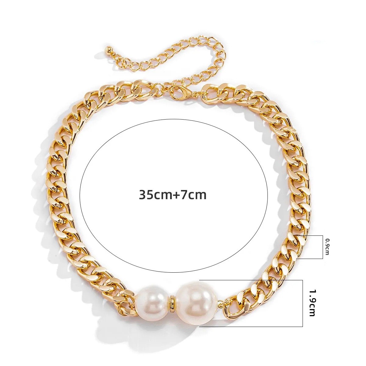 Elegante collar choker para mujer con longitud ajustable de 35 cm + 7 cm, adornado con dos grandes perlas, ideal para cualquier atuendo. Descripción completa