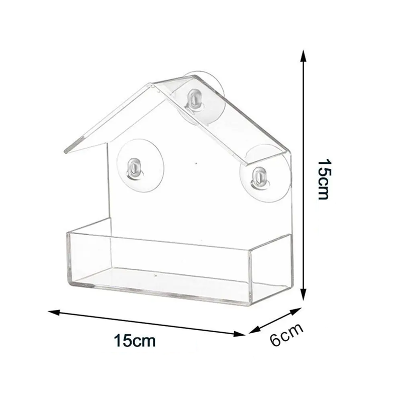 Comedero transparente de plástico para ventana 15 x 15 x 6 cm Comedero con ventosas para aves Comedero exterior con montaje sin herramientas