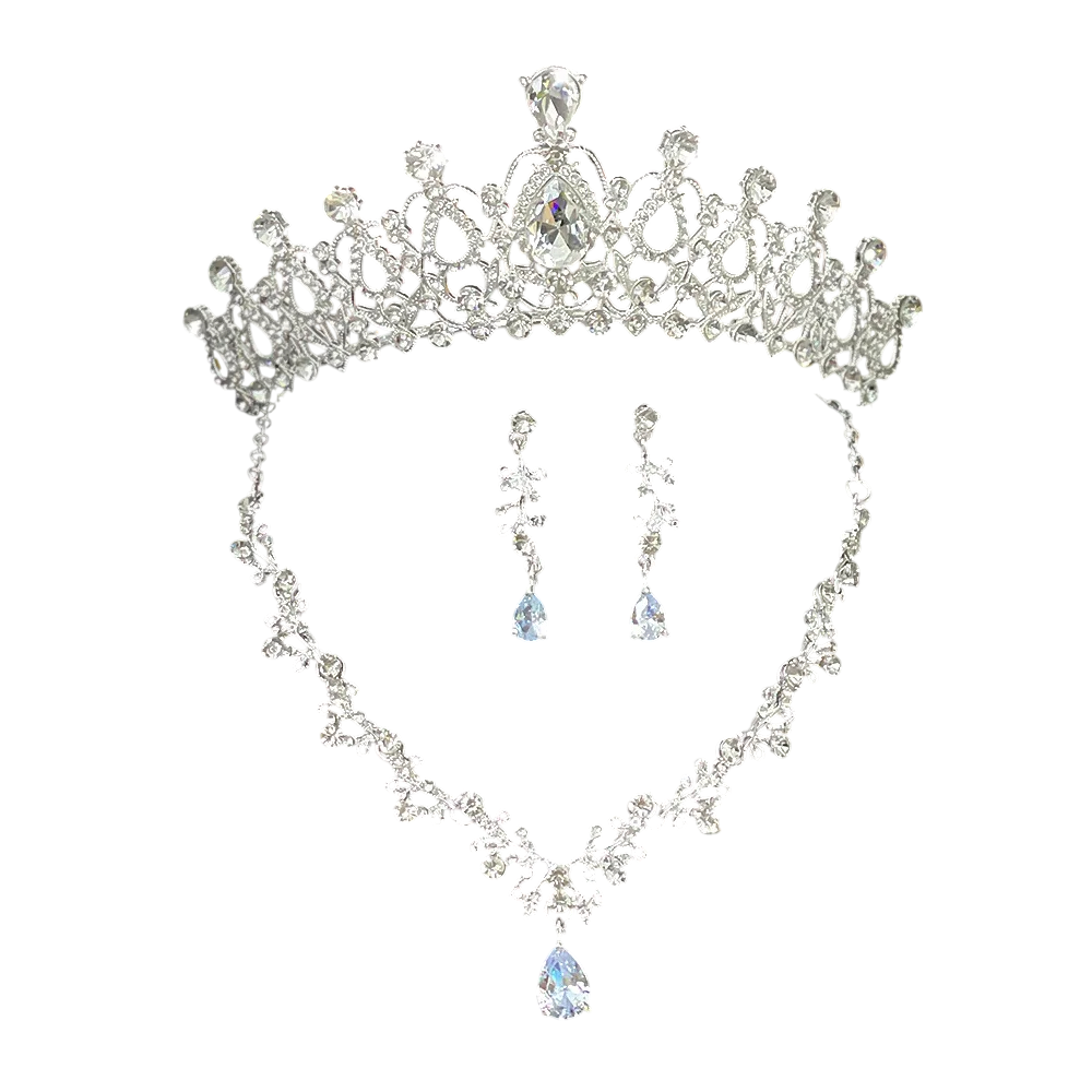 Conjunto de boda elegante de diadema, collar y pendientes Corona de lujo para damas Accesorios para el cabello Set de joyas para novias celebraciones bailes fiestas
