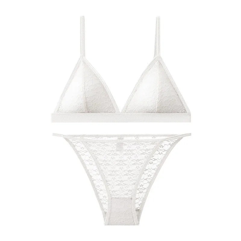 Conjunto ligero de encaje con un delicado patrón y material elástico, adecuado para un cómodo uso diario como lencería. Descripción completa