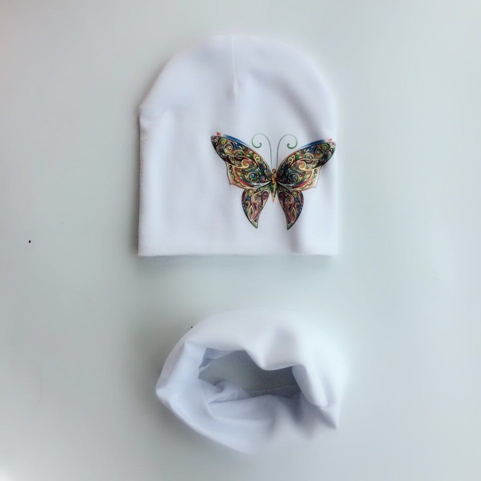 Conjunto de gorro y pañuelo infantil con mariposa