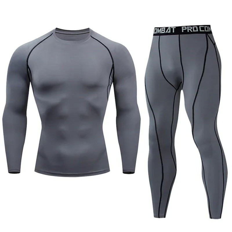 Página de inicio Página de inicio Ropa y accesorios Ropa de hombre Camisetas de hombre Camisetas funcionales de hombre Conjunto de hombre de leggings y camiseta de manga larga, escote redondo, poliéster