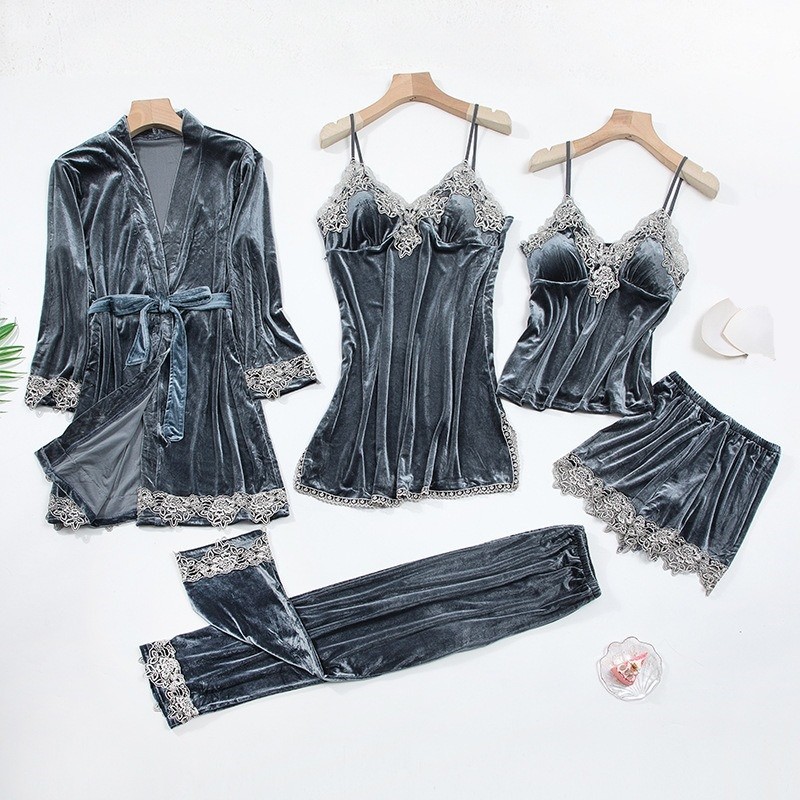 Contenido del paquete: 1x top, 1x pantalón, 1x pantalón corto, 1x camisón, 1x albornoz