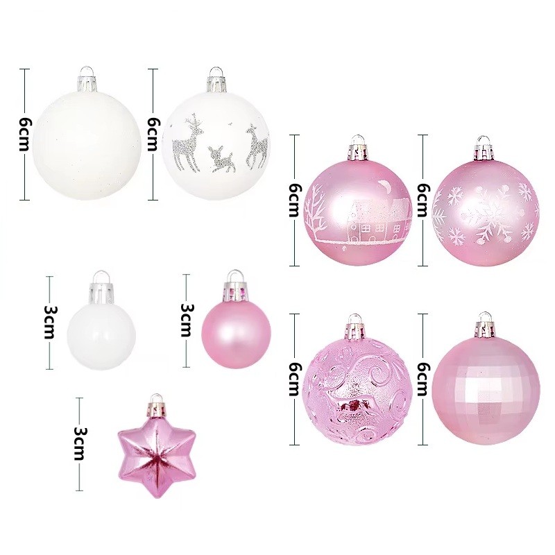 Conjunto romántico de adornos navideños rosa y blanco 44 pcs 3 - 6 cm Bolas y estrellas Diferentes tamaños para árbol y decoración