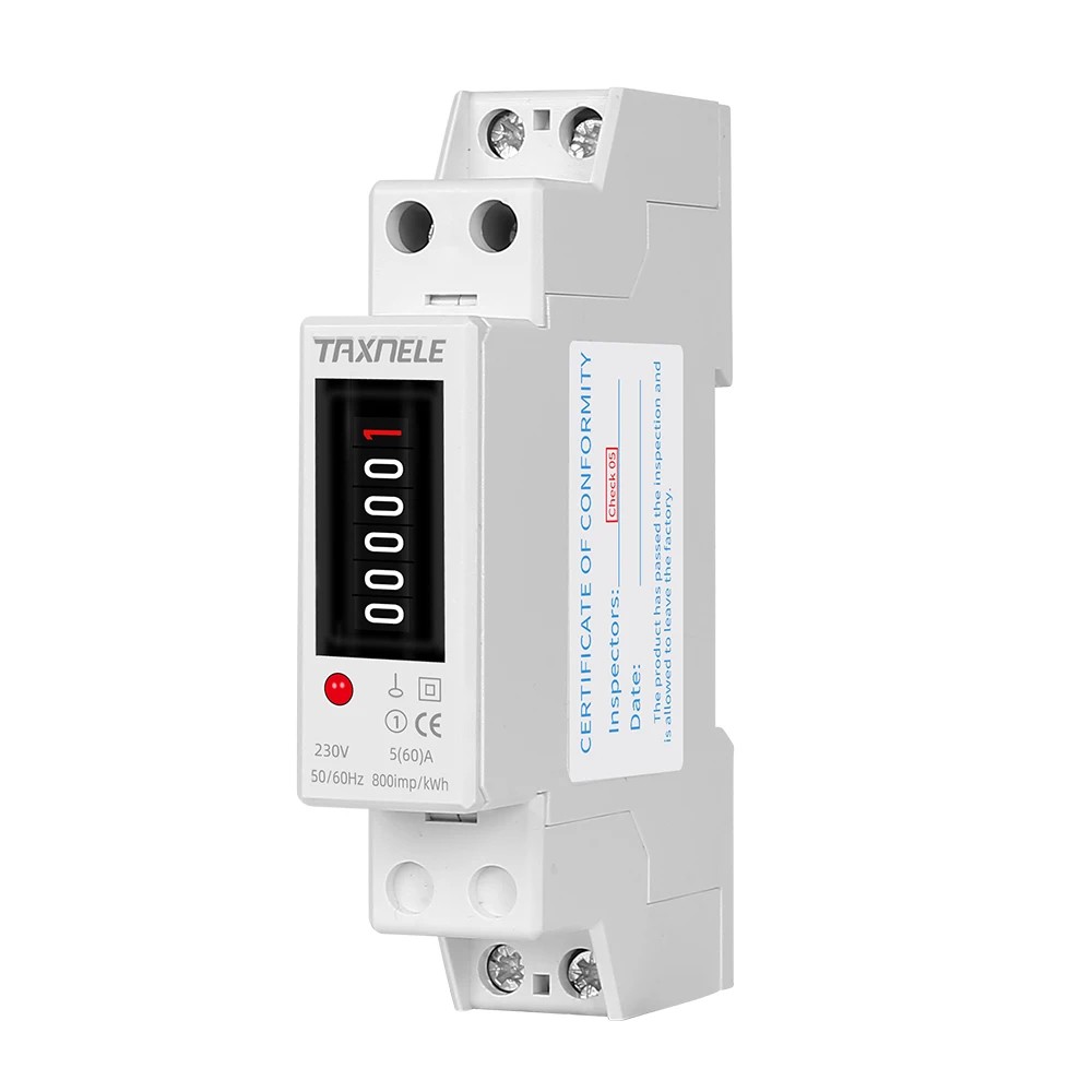 Página de inicio Página de inicio Hobby y jardín Instrumentos de medición Contador eléctrico 91 x 18 x 65 mm 230 V 5(60) A Monofásico 1P 2 conductores DIN 35 mm Pantalla analógica Memoria tras fallo Clase 1