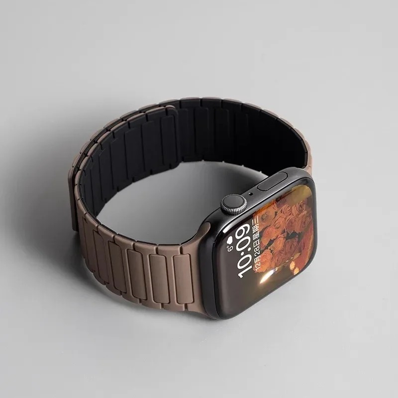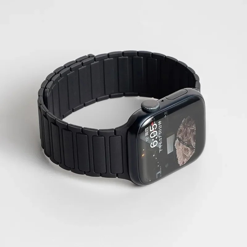 Correa de silicona cómoda con cierre magnético para varios tamaños de Apple Watch. Fácil de poner, sujeción segura y aspecto elegante. Descripción completa