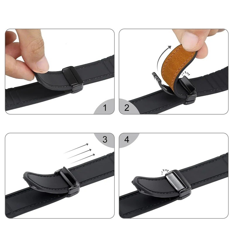 Correa elegante de doble capa de cuero y silicona para Apple Watch de 38–41 mm. Resistente, cómoda, suave, con hebilla clásica para un ajuste seguro y comodidad durante todo el día. Descripción completa