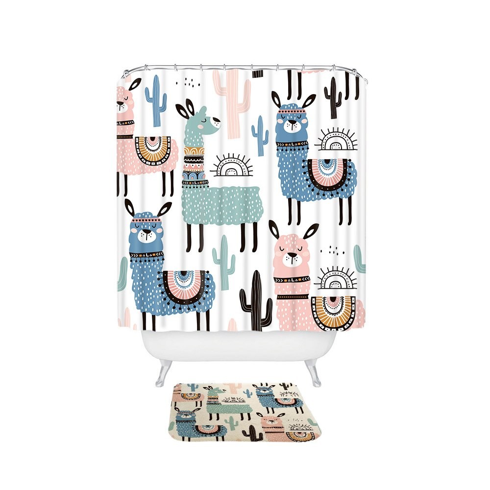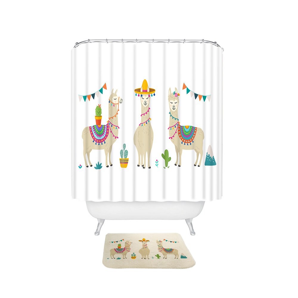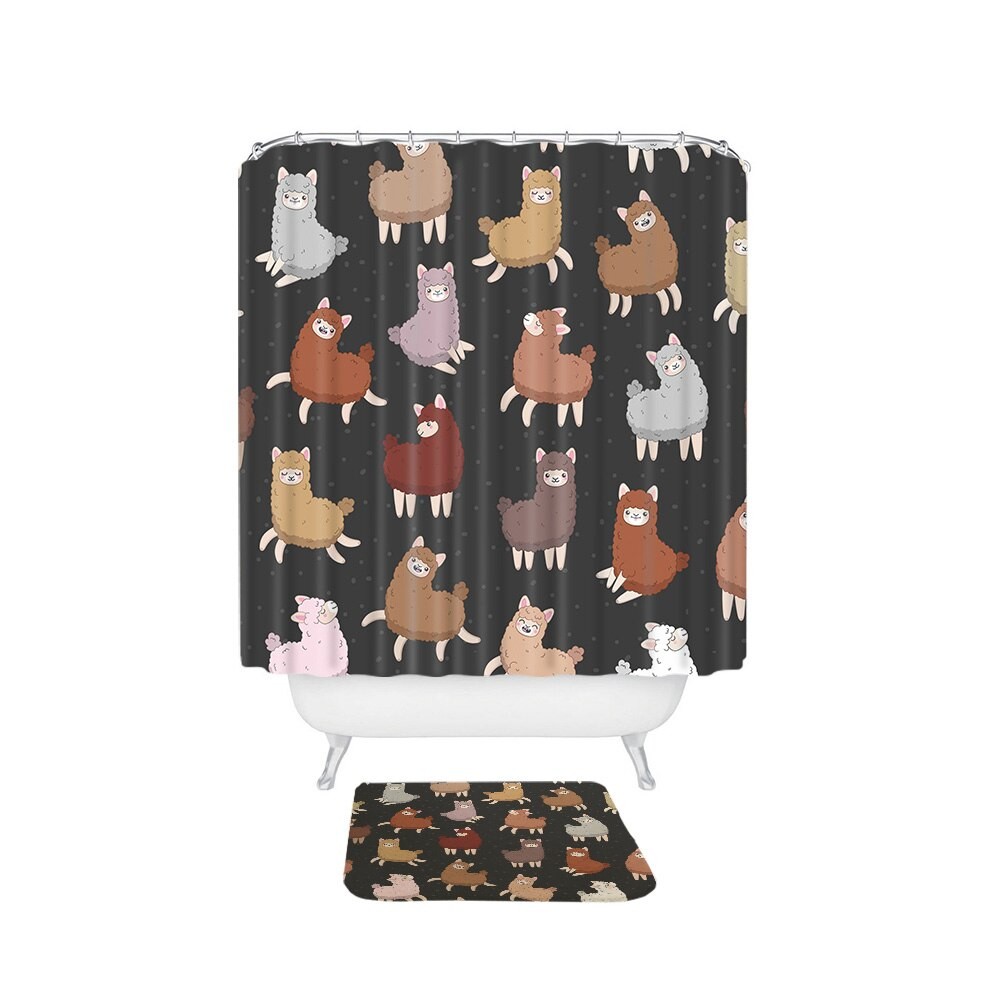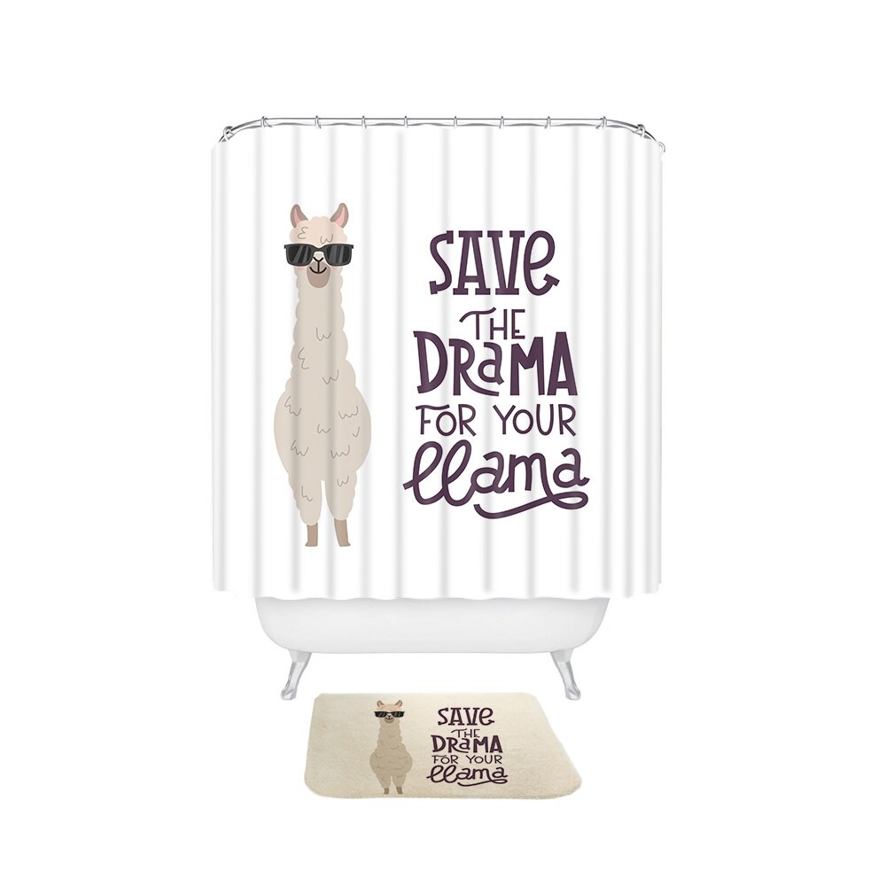 Cortina de ducha y alfombrilla con llama 2 uds.