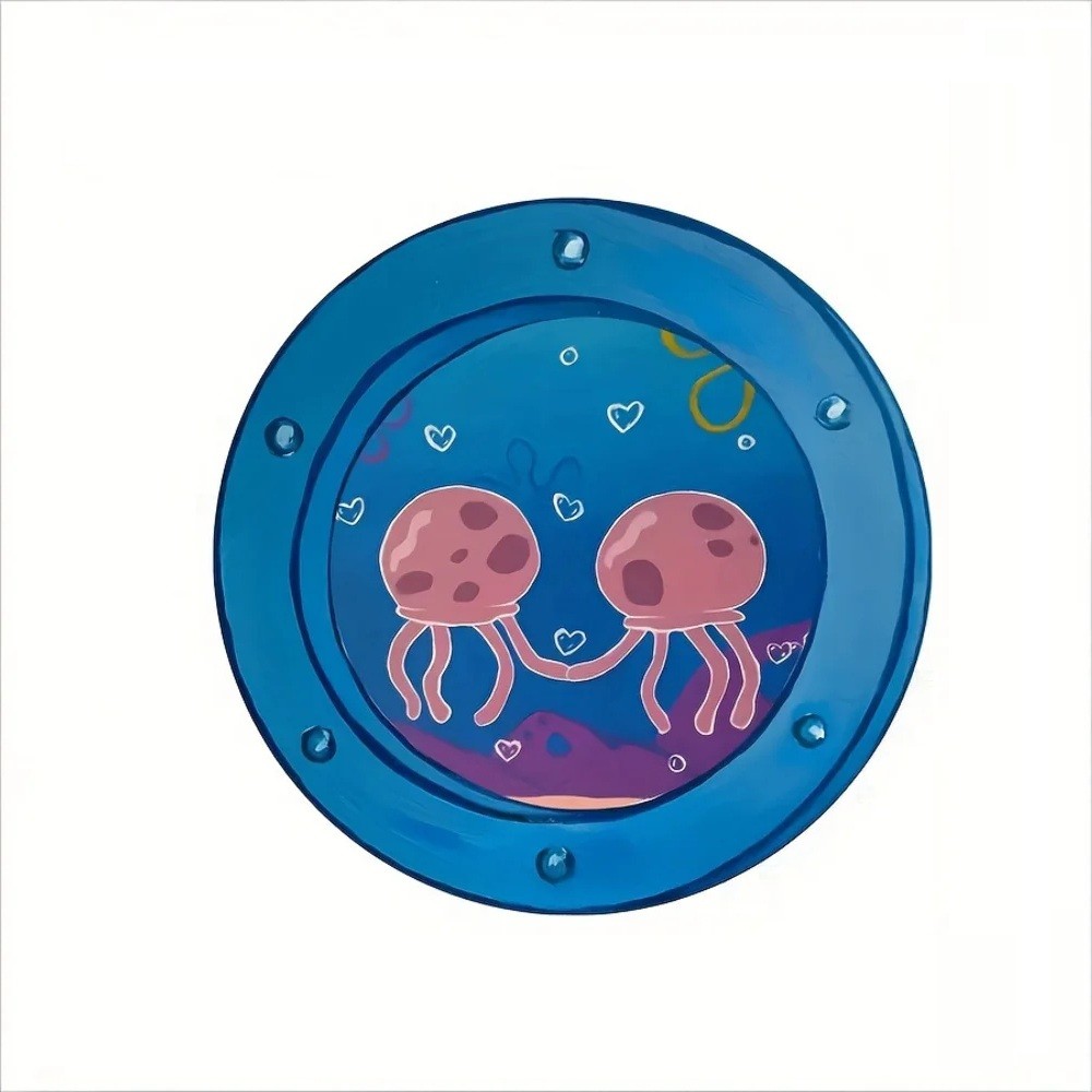 El motivo de las dos medusas es adecuado para un interior donde se desea que la decoración tenga un efecto suave, juguetón y temático. Gracias al marco circular y la combinación de colores, el cuadro puede encajar bien en una habitación con motivos marinos o en un espacio donde predominan los accesorios en tonos azules. El marco visible constituye una parte destacada de toda la apariencia y no es solo un detalle marginal. Justamente el formato redondo con marco le da a la decoración un carácter distintivo y la diferencia de las impresiones planas clásicas o de las imágenes comunes.