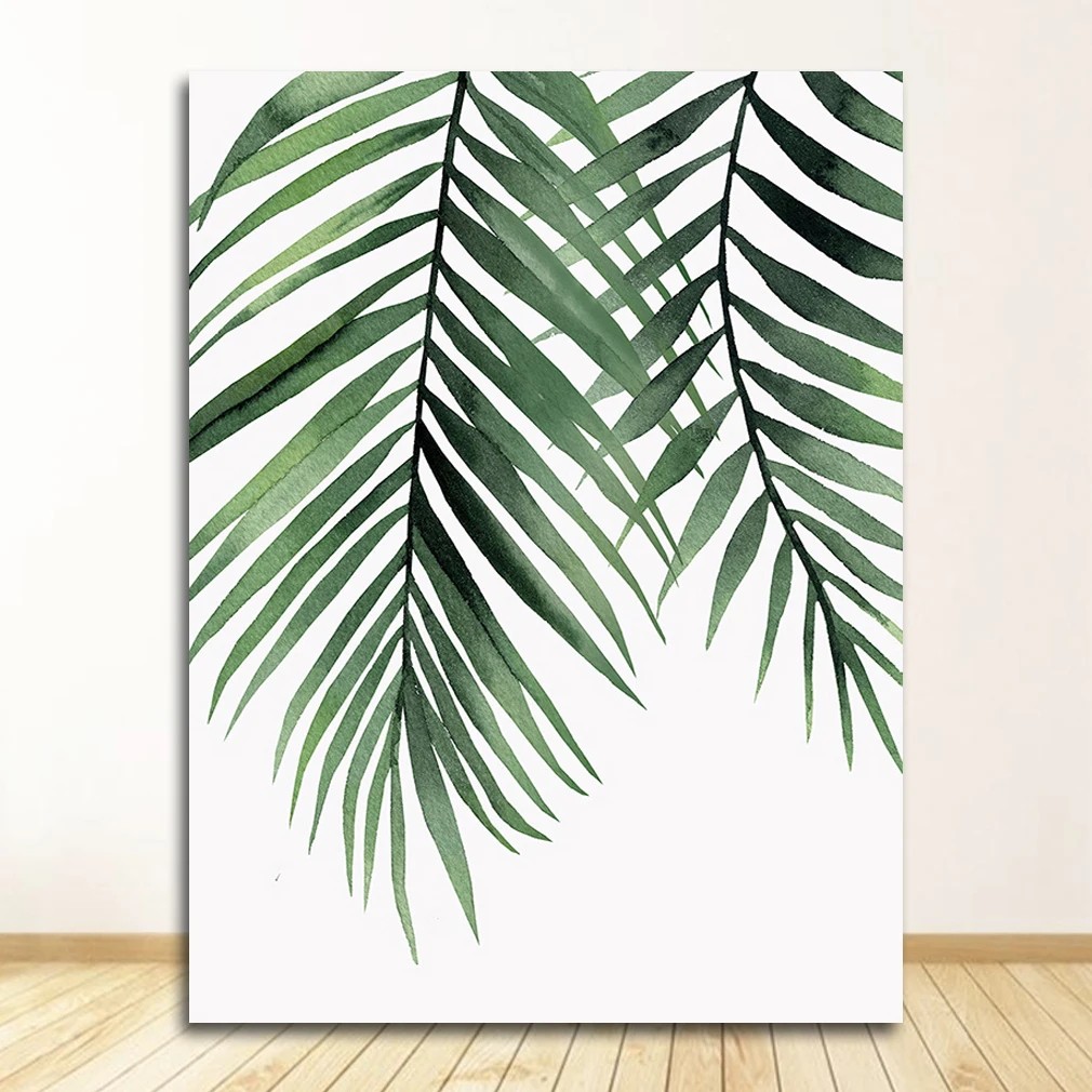 Página de inicio Página de inicio Casa y enseres domésticos Decoración y accesorios para el hogar Marcos y cuadros Cuadro de pared hojas de palma acuarela 40x50 cm lienzo sin marco verde blanco decoración para salón y dormitorio