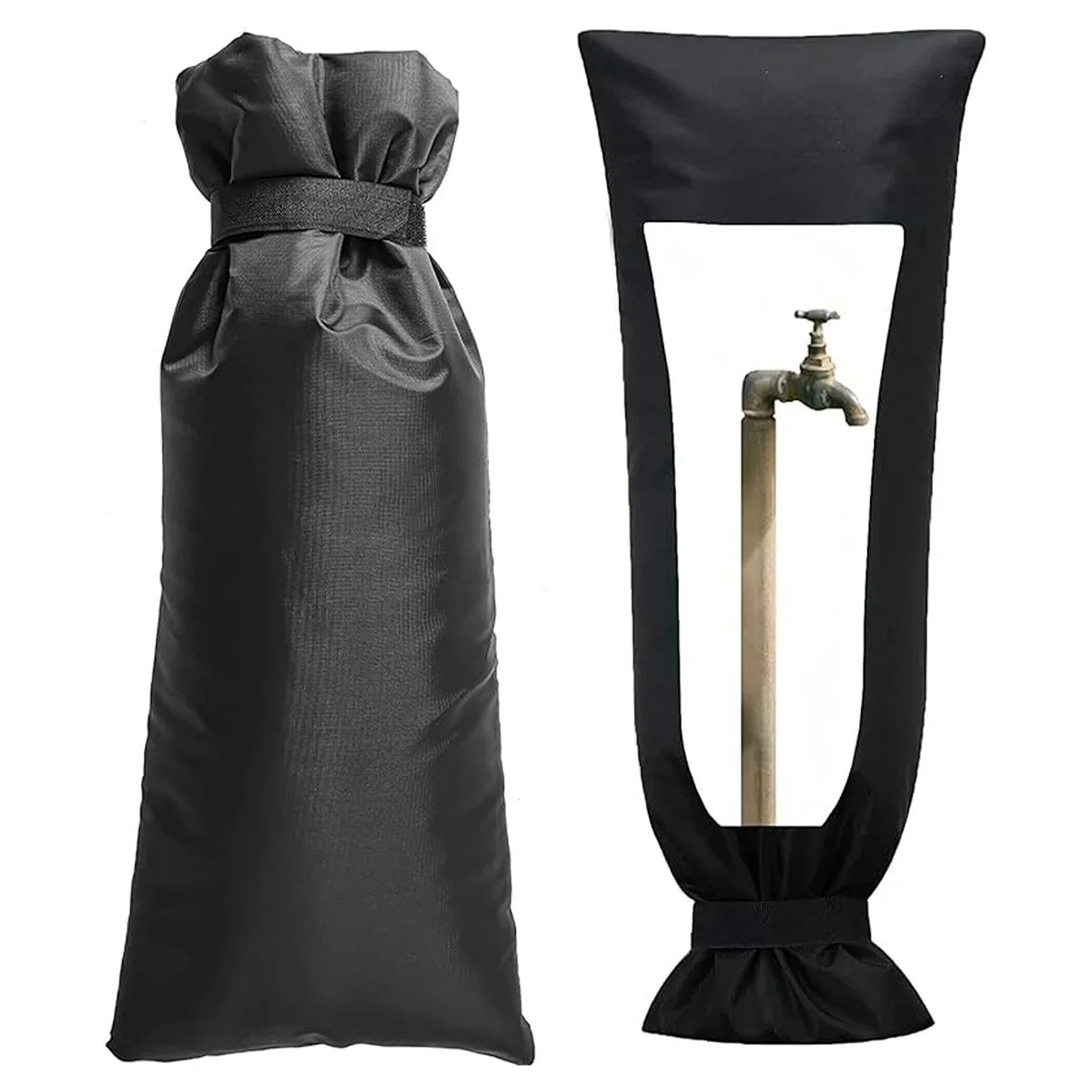 Cubierta aislante de invierno para grifo exterior 19 x 50 cm Negra Extra protección contra heladas, viento y lluvia